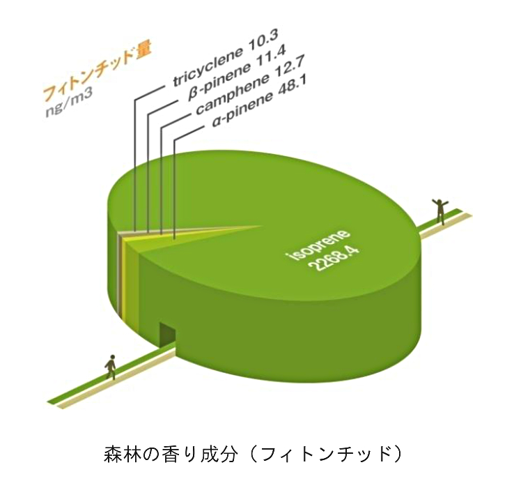 Measure of chemical substances (phytoncide) such as Alpha-Pinene that plants release. Regarding chemical substances of phytoncide which trees emit, Isoprene was the most commonly detected in “Forest Therapy Roads” and also Alpha-Pinene, Camphene and Beta-Pinene were detected.
